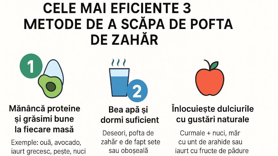 Deseori, pofta de dulce este de fapt semn de deshidratare. Bea un pahar cu apă și așteaptă 5 minute — în multe cazuri, pofta dispare.